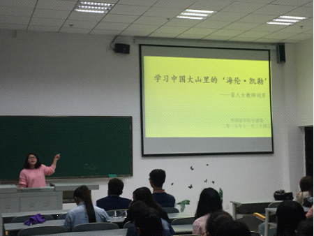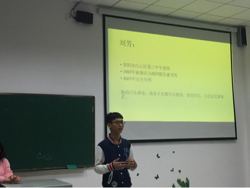 讨论会上,代曼曼同学首先为大家介绍了一下盲人教师刘芳伴随着失明,依然坚守岗位多年的感人事迹,播放了刘芳老师的相关视频,同学们看了深受感动。我院2015级英语专业的胡旭同学,曾是刘芳老师学生,他向大家介绍了一系列刘芳老师的日常工作作风和个人事迹,同学们被刘芳老师的先进事迹深深感染,纷纷为她点赞:“刘芳老师让我们相信一切皆有可能,只要你愿意付出。”“逆境并不可怕,可怕的是你没有勇气去追求光明。”“我们要像刘芳老师一样,勇于接受自己的不完美,用独有的方式实现人生价值。”……