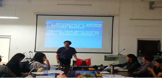 首先,四名英语专业教师各自宣读了所教课程教案,并阐述了课程教学方法和设计思路。随后,各位在座教师对上述教案设计表达自己的观点与看法。最后,何教授对每个教案进行点评,并就如何合理设计课堂教学与大家进行了深入的交流。他强调教学的总体设计要突出教学思路、内容设计和教学重、难点。好的教学设计应包含师生互动内容设计、课时分配、教学方法、教学效果评价等几个方面。何教授还以自己的课程为例向老师们展示如何将一堂对学生来说枯燥生涩的专业知识课以生活化和循序渐进的方式生动有趣地加以推进。