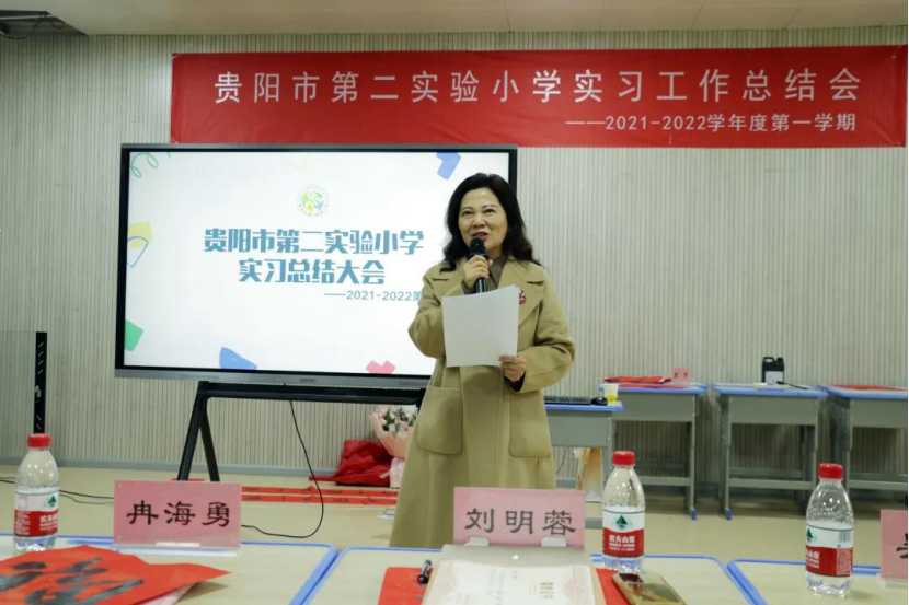 实验二小刘明蓉校长在实习总结中指出:“实习时间虽然辛苦,但一定会是实习生们人生经历中的一段难忘时光,是一笔难得的精神财富。”刘校长从德、能、勤、绩四个方面对实习生老师做出了中肯的评价,对实习生们提出期望:对自己的未来要有一个规划,不要浪费一点一滴学习的时间,多加强自己的专业知识、专业技能学习。希望实习生们无论以后在哪个工作岗位都要脚踏实地、认认真真工作,将教师吃苦耐劳、勤勤恳恳的精神带到自己的岗位上,发光发热。