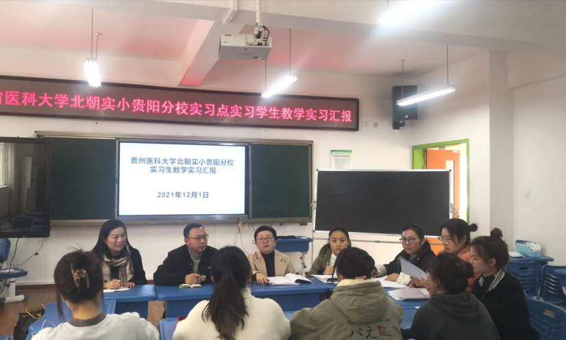 2021年12月1日、12月6日、12月10日,必威BETWAY西汉姆联副书记马琳娜、副院长冉海勇、英语系主任余兰、学生科科长黎文清、教学管理科谷珍、冷凤分别赴必威BETWAY西汉姆联实习基地北京朝阳实验小学贵阳分校,贵阳市实验二小总校区及宅吉校区、天誉城校区,听取了2018级英语专业、翻译专业18名实习生的实习总结汇报。