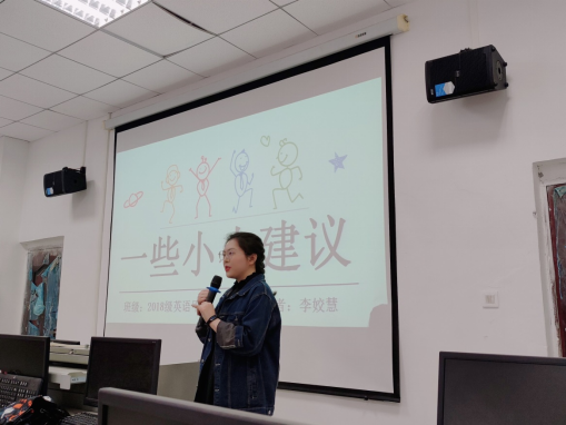 为帮助低年级同学们解决了学习、生活等方面的困惑,为同学们将来的学习和工作指明方向,帮助同学们做好未来学习和职业规划,邀请优秀毕业生代表李姣慧做学习经验交流。