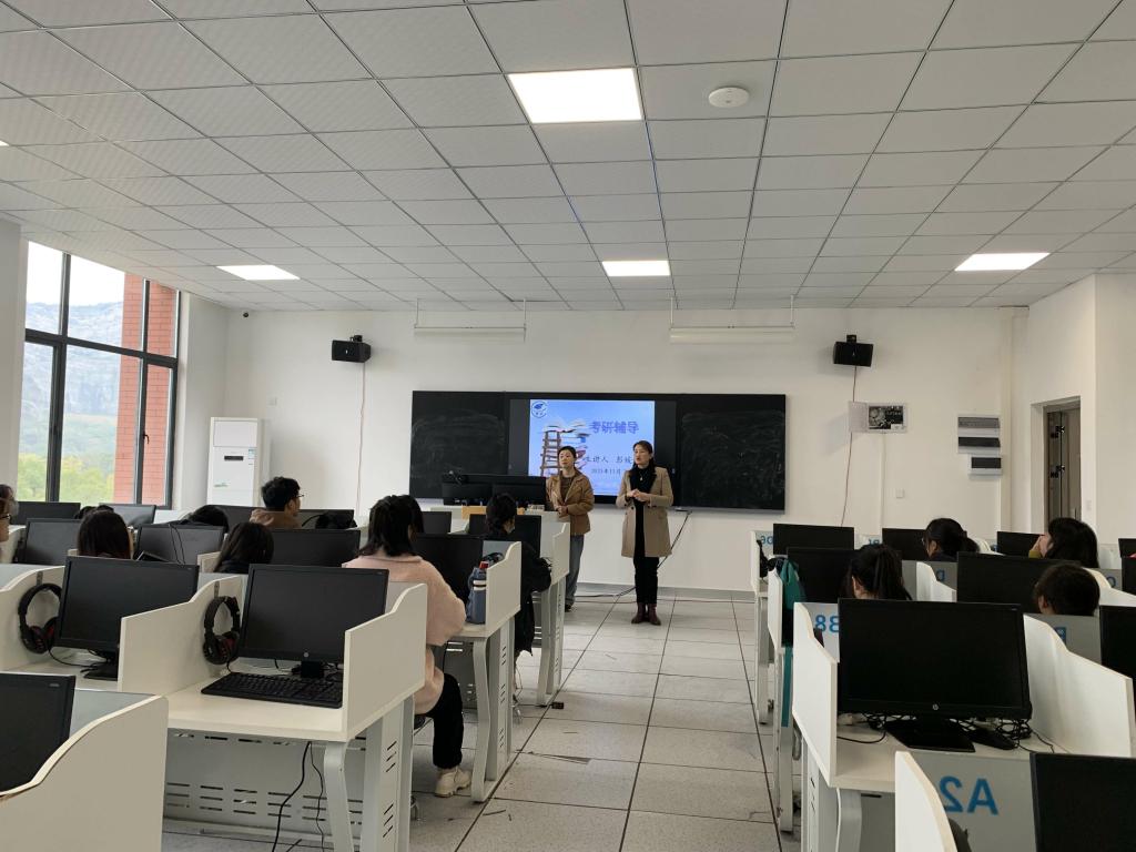 彭媛媛老师会前精心准备辅导内容,在辅导中帮助同学们分析了跨专业考研的形势和侧重点,结合自身的考研经历,先后围绕专业选择、初试备考、复试、择校等方面向同学们做了详细的介绍,并就如何高效地制定学习计划给出了具体的建议,为同学们提供了宝贵参考。她肯定了同学们考研的选择,强调考研不仅可以提高自己的学识水平,还可以给自己提供广阔的就业机会,同学们深受鼓舞。在互动交流环节,同学们纷纷提出自己的问题,彭媛媛老师热情耐心地答疑解惑,现场气氛十分融洽、活跃。彭媛媛老师鼓励同学们积极应对跨专业考研,通过考研磨砺意志,去经历考研的艰苦和挑战,让自己成为一个耐得住性格、孜孜不倦的人。