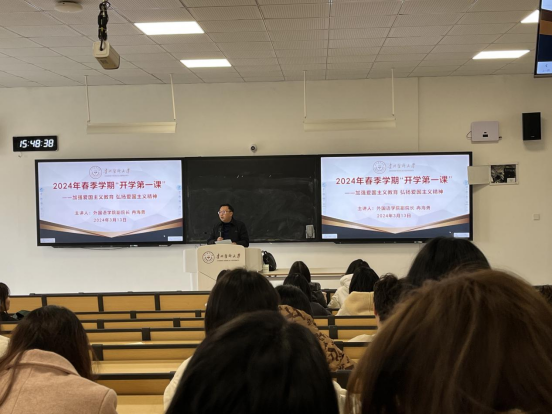 2024年是中华人民共和国成立75周年,是习近平总书记“3·18”重要讲话发表5周年,同时也是《中华人民共和国爱国主义教育法》施行元年。为践行为党育人、为国育才的初心和使命,加强新时代爱国主义教育,传承和弘扬爱国主义精神,引导学生以不负时代、勇毅前行的奋进姿态书写青年答卷。根据学校有关要求,结合我院实际,3月13日下午,必威BETWAY西汉姆联党委副书记马琳娜、副院长冉海勇为学生讲授“开学第一课”、各年级辅导员走进教室召开主题班会。