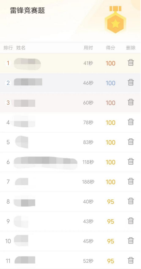 比赛总共20道题,涵盖雷锋精神的核心、雷锋事迹等内容。我们围绕社会主义核心价值观、志愿服务、雷锋等相关知识进行设置,通过故事为载体向学生们介绍社会主义核心价值观、雷锋的精神和事迹。同学们积极参与,认真作答,通过答题对雷锋“向上”的人生态度和“向善”的价值追求有了更深刻的认识。