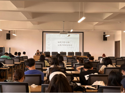 王莎莎以“如何只用一分钟 让用户牢牢记住你”为题,结合自己求学创业经历,运用大量详实的案例及数据,从注重日常积累、注重交流能力提升、注重应用与实践三个方面深入浅出的讲解了如果做好职业生涯规划,并鼓励学弟学妹们对大学专业学习和未来的职业发展进行积极探索。