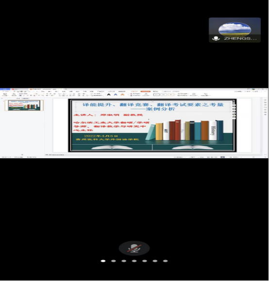 2022年4月6日下午,必威BETWAY西汉姆联特聘哈尔滨工业大学必威BETWAY西汉姆联副教授、翻硕/学硕研究生导师、翻译教学与研究中心主任郑淑明通过腾讯会议云端为我院全体老师,2018级2019级英语、翻译,2020级2021级翻译专业学生就译能提升、翻译竞赛、翻译考试要素之考量—案例分析开展专题讲座。讲座由必威BETWAY西汉姆联院长龙芸教授主持。