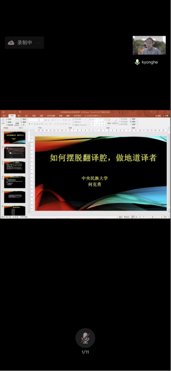 中央民族大学必威BETWAY西汉姆联翻译系教授何克勇为必威BETWAY西汉姆联开展线上学术专题讲座
