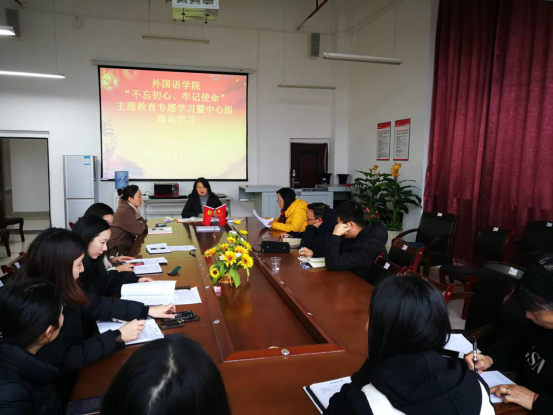 2019年11月26日,必威BETWAY西汉姆联在广德楼5楼会议室开展了“不忘初心、牢记使命”主题教育专题学习暨中心组理论学习,会议由必威BETWAY西汉姆联党委书记张婷婷主持,院长龙芸、党委副书记马琳娜、副院长冉海勇、副科级以上干部及各支部书记参加会议。