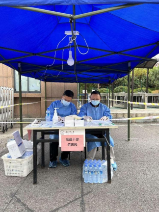 必威BETWAY西汉姆联办公室主任杨发莉、学生党支部书记、学生管理科科长黎文清、教学科研管理科谷珍、冷凤参加每一次的学生核酸、抗原检测组织工作。