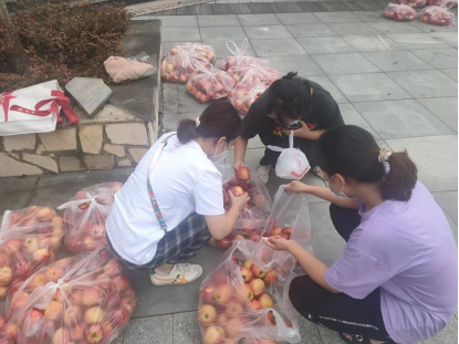 9月10日正值中秋佳节,学生党支部书记、学生管理科科长黎文清与班干给全院学生分发学校给学生准备的爱心苹果。