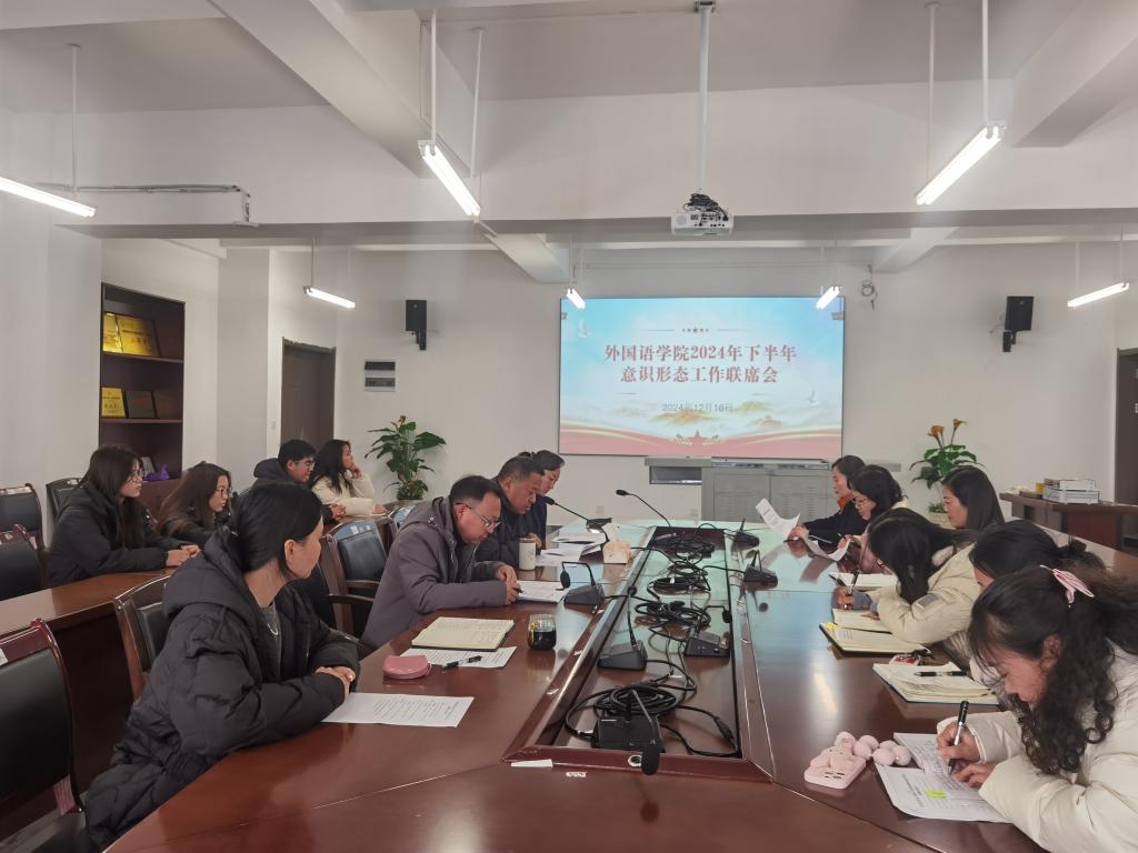 12月16日,必威BETWAY西汉姆联在云漫湖校区会议室召开2024年下半年意识形态工作联席会。会议由学院党委书记、院长付启宏主持,学院党政领导班子、副科级以上干部、语言实验中心及教研室负责人、各党支部书记、各班级学生信息员参会。